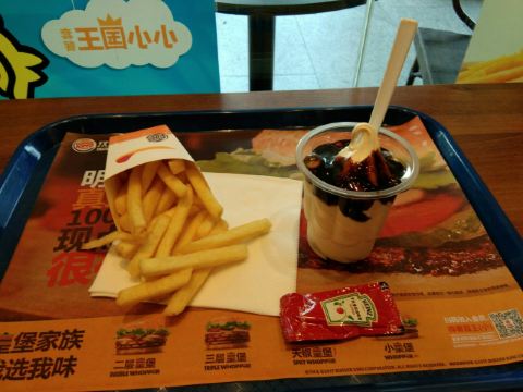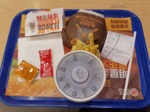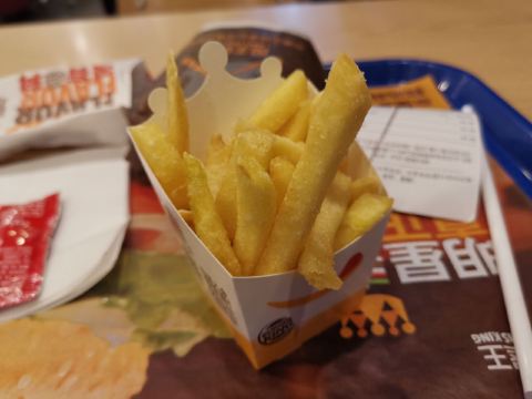 Burger King (foshanzumiaobodunguangchang)💋特色:地段繁华,快餐为你逛街节省N多时间! 🚏探店餐厅:汉堡王(佛山祖庙铂顿广场店) 🚟地理位置:建新路111号A11铂顿商场首层1F-035号商铺。祖庙地铁站,附近有四五个超大型商场!不容错过。 [薄荷]店铺环境: 门店有两边门,但是特殊时期商场那侧的们就没有开的,所以只能从马路那侧进入。 特殊时期,门店门口摆着洗手液和登记表,但是没有店员进行登记指引,也无需测温。 前台店员都推荐无接触下单,自助机支持团购单。 店内有明显摆放隔桌用餐的标志,而且出餐位置配有免洗洗手液,店内还有洗手池。 ☑️推荐菜: 新品|鱼跃龙门皇堡^是它家近期推的新品,两层肉,非常足量,但是我偏爱鱼肉的那层,牛肉那层就真的味道一般般。但是番茄蔬菜酱料的搭配酸酸的,挺好吃。 |薯霸王(小)^它家的薯条是这的不错,个头也比别家的大,就是数量相对会少得比较明显 |王道嫩香鸡块^鸡块也是弥补了它家汉堡的不足,加上酸甜酱,就真的是绝配了! [服务铃]整体体验 用了禅城优惠券40元,整个套餐自付了3元,太划算了! 虽然店内人不算多,但是出餐速度有点感人,建议加强。 ✨#点评日常💟,爱点评,爱生活✨