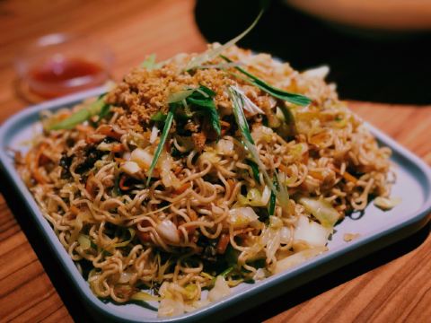 蓝忍忍kate位置:傲客夜食 最近站台莲岳路口 槟榔附近 联谊大厦Helens旁边 最早关注傲客公众号得知他们开了店,一直想来瞧瞧~ 推薦: 盐水鸭肝 ,鸭肝切的比较薄,盐水做法真的是好咸 但是越咸越能提现鸭肝的好吃 深夜来盘炒泡面 ,能把炒泡面做的这么好吃也是不容易!虽然很家常,但是味道却很独特哦! 脆椒鸡中翅, 鸡翅的皮很脆 像是小时候家里炸鸡翅的味道,虽然可能看起来偏辣,实际上不辣,这道菜有令我惊艳到,为了它我还会再过来吃的! 饭后甜品 雪梨银耳羹 即解腻又去火~非常符合我养生老阿姨啊~关键特好喝! 服務: 非常热情 细节能体现 洗手间有牙线发圈啊还有一次性漱口水 真的很贴心 鹭岛深夜食堂——傲客夜食