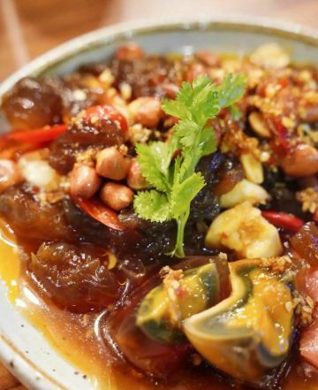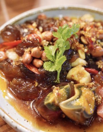 手撕鸡,碳烤江团,盐水鸭肝,潮汕梅汁水果,生腌虾,脆椒鸡中翅,7秒嫩猪肝,鲜烤江团,凉拌芭乐,冻香螺,闽南醋肉,柠檬小管,阿伟私房炒泡面,卤肉饭