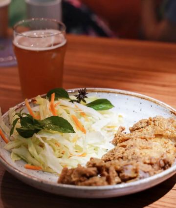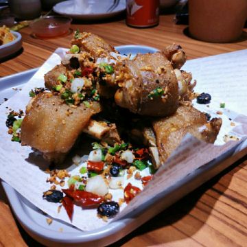 是佩圆呀厦门最有傲骨的宵夜食堂,一站式吃齐民间大厨招牌菜 集合知名民间大厨招牌菜,免去奔波的烦恼一站式满足你的胃,这么优秀的地方哪里找?想来只有傲客夜食·食验室吧! 说到傲客公众号一直是另类的存在,推了无数社区小店和苍蝇馆子深得我心,探店的文章真实客观不会夸大瞎吹,无数网红店在这里杠龟(偷笑脸) 自从在槟榔酒吧街上开了傲客夜食·食验室后各老饕寻味而来导致天天爆满,老板什么时候考虑下开分店呢~ 门口傲客的吉祥物自带喜感,如果你也经常看公众号一定很熟悉,里面工业风配闽式烧酒档,简约又不失亲切感。 到店发现上新菜了,这个季节炸物与美酒齐飞,点炸鸡腿排送凤梨果啤~这好事我能错过吗! 光看色泽就已经十分诱人了,一口咬下去什么鲜嫩多汁、焦香酥脆已经不够形容了,我只想说就算胖五斤我也认了! 有炸鸡怎能不配啤酒!凤梨果啤果香浓郁很好入口,酒精度也不高非常适合女生,我分分钟能喝一打~ 小陆烤鱼的招牌菜——鲜烤江团,配一瓶青岛啤酒倒在烤鱼里增香去腥,我不会告诉你趁服务员小姐姐不注意,我偷偷喝了半瓶。 江团肉质细腻又刺少,怕鱼刺的人可以放心吃,我最喜欢吃那层焦香的鱼皮了,记得里面的配菜多煮一会才入味。 手撕鸡,鸡肉充分的吸收了酱汁,嫩滑却不失嚼劲又入味,每一口都有滋有味。 夏天的夜晚不需要经历高温烘烤,口感脆嫩清爽的仔姜皮蛋拌海蜇就是一盘非常优秀的烧酒配。 酒过三巡总需要些汤水暖胃,这时候你需要来碗本港青蟹海鲜粥。 蟹黄在煮制的过程中渐渐融入到米粥里,再配上新鲜肥美的花蛤和紧实弹牙的小管,一口入魂满满都是海洋的味道。 Tips.晚上六点开始营业,白天去别跑空哦~