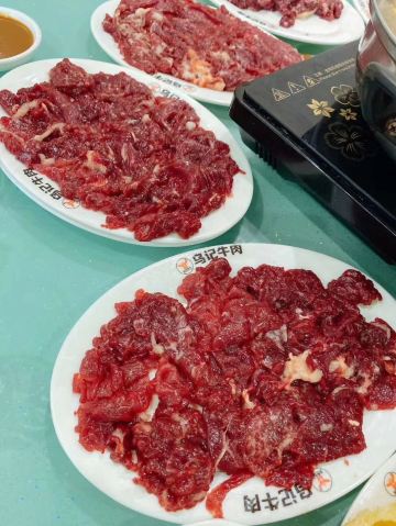 真大,停车场也很大,还有人在路边引导停车,体验真实太好了。下车进入店内,一股牛肉腥味就扑面而来。四个大厅,一个包厢厅,一个圆桌大厅,一个小圆桌厅,一个四人方桌厅,满足不同用餐需求。上菜特别快,一下单,几乎没有停顿,就上餐了。脖仁和五脚趾,嫩肉和吊龙,沙茶酱味道也好。当地人来吃的很多,应该相当正宗了。就是感觉食客不注意卫生,把纸啊什么的地上乱扔。。。