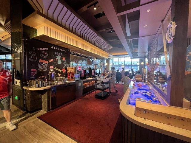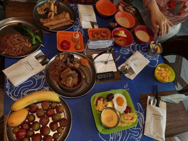 SAILOR BUFFET🌃 【环境】:一早上就有轰轰烈烈的大食堂的感觉,突然就睡意全无,太开心了。 第一次早餐吃的这么热闹像晚餐,果然孩子多的地方就是气场热烈。 位置在酒店的二层平台,坐在窗边可以看到一层中庭。 💁 【服务】:nice!在门口核销,非常迅速,一分钟就搞定进去找位置坐下。餐厅够大,即使游客超级多也不用等位置,工作人员收拾迅速,离开一桌就马上收拾好了。而且临近结束会每桌提前通知到再去拿点吃的,以免时间到,档口没有食物了。 档口补充食物也很积极,会一直保持有餐品齐全。 🍳 【口味】:口味齐全。看着是中式西式,天南地北的食物都有。完全不像是在吃早餐。 现烤华夫饼🧇太香了,旁边围满了小朋友。 🧃也很多种,简直是小朋友的天堂。 携程买的早餐卷也很划算,这个早餐情绪价值拉满了!😄