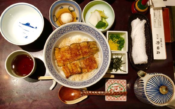 这是一家已经有200多年历史的老店。店主金本兼次郎先生是第八代传人,本店是少数还在使用天然鳗的店家,天然鳗只在四月到十二月期间有,所以这个时节来吃鳗鱼是最好的哦。鳗鱼入口即化,甚至连鱼冻中也留有浓度极高的鳗鱼鲜味,满口清香。
