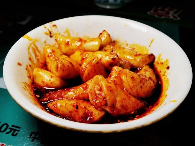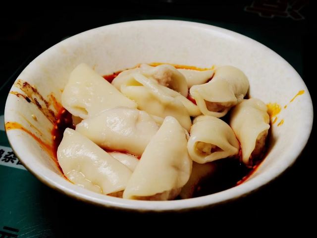 甜水面是每桌必点,有的称呼为棍棍面,比较粗,也有劲道。儿子很喜欢甜水面,自己不能吃辣,尝试了一口素椒面还不错,以前不吃清汤的选择了一碗抄手,这么多年的习惯不吃清汤居然发现有意外之喜,合胃口。这家水饺很小个,皮比较厚,突出了小巧的嚼劲,有特点,生意比较好。