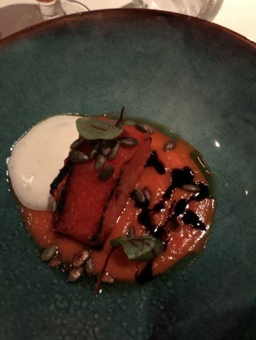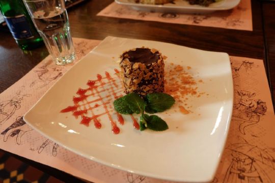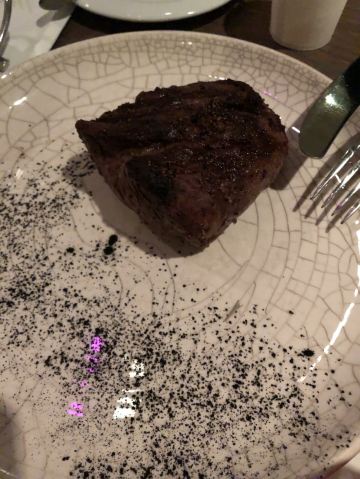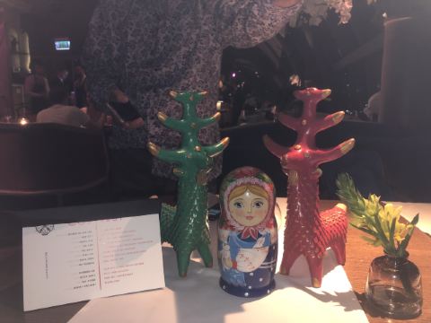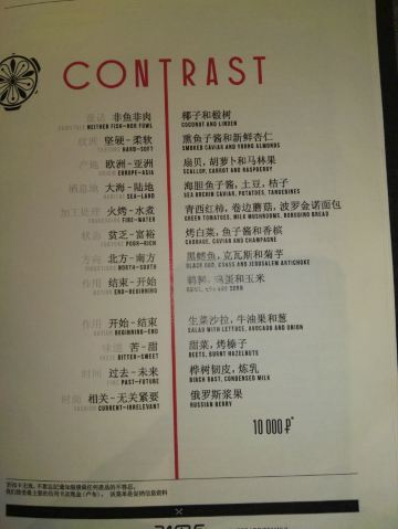 White Rabbit我通过携程订座,到餐厅后因为着装(运动装)不合格而被拒绝入内,行前我还问了携程订座客服餐厅对着装是否有要求,客服回答没有要求,这下尴尬了。不得不到楼下花了4000多卢布买了衬衫和裤子,穿好后才被允许入内,事后携程订座客服将订餐费退给我,还报销我的服装费。 餐厅有中文菜单,我们没有按携程推荐的点菜,而是选了菜单首页的套餐(10000卢布/人),味道重,有点偏咸,但总的来说味道不错,很有特色。餐厅环境很好,可以俯瞰莫斯科夜景。服务不错(小费另收了970卢布),但无人懂汉语(还好我们带了讯飞翻译机),且上菜速度慢,我们花了4个小时吃饭(这点他们已事先告知)。如果不点套餐,上菜速度会快些。 总之,很棒的体验,是我们在莫斯科难忘的一餐。