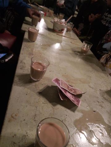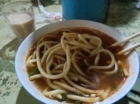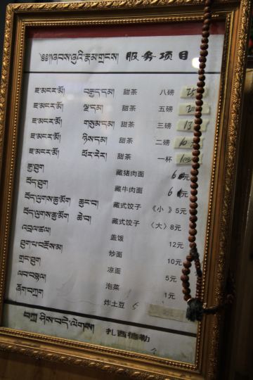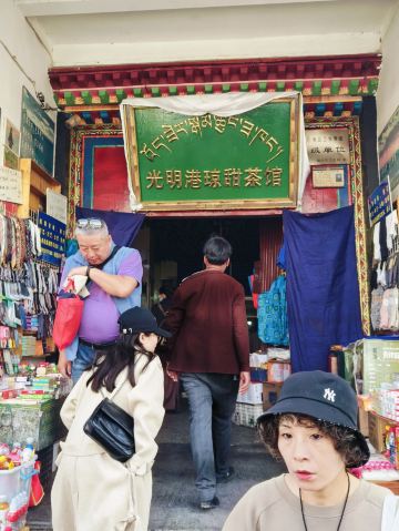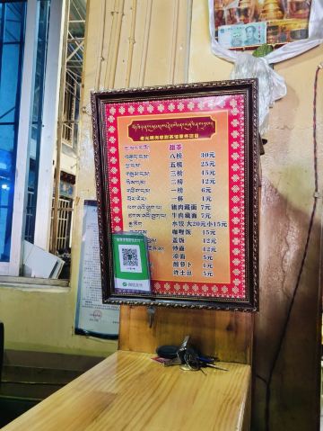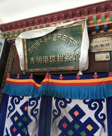 名气超大,来拉萨必尝的一家店。店内是四人长方桌和长条凳,顾客中藏民占一大半,游客占一小半。取一玻璃小杯坐下,摆一堆零钱在面前,服务员自会提着大铝壶过来斟茶,服务员自行取钱找零,茶很热,入口细滑,奶香浓郁。推荐:甜茶、牛肉面。
