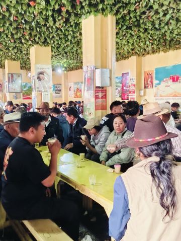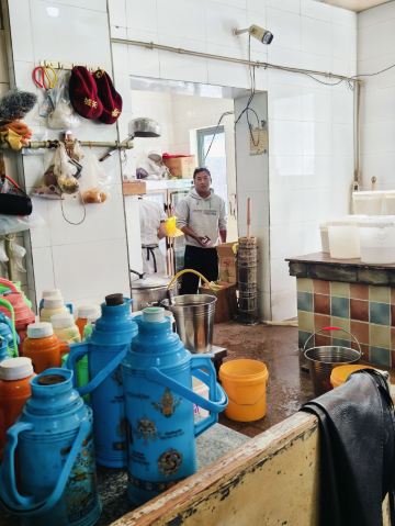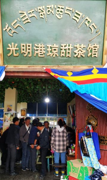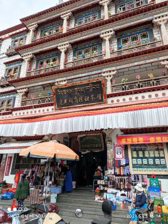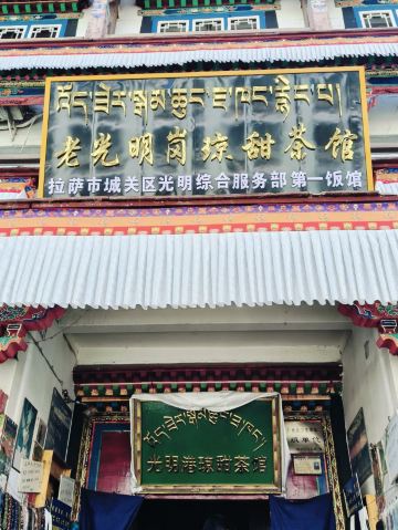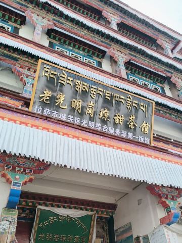 Guangming Gangqiongtian Tea House老光明茶馆真真正正令我有点吃惊,这里竟然能有这么多人,体量应该是拉萨茶馆第一。饮茶的本地人占百分之九十,偶尔有点游客。座位自己找,哪里有就坐哪里,基本上都是和藏族老百姓一起拼桌。他们非常友善,和他们聊天非常愉快。环境实在普通,甚至可以说有点脏乱。甜茶要收10元壶的押金,走的时候忘记回来跟他们好好说还是退了。藏族大哥给我说最好是一杯杯喝,每一次味道都有差别。土豆还可以,看其他人吃藏面还挺香的。可以来坐坐,真的可以感受到他们的幸福感。