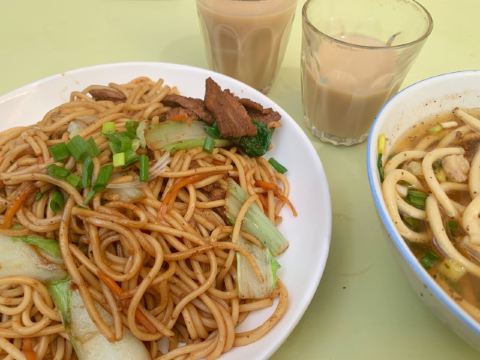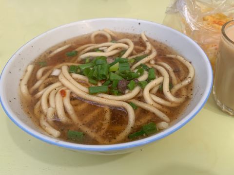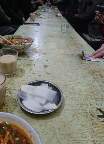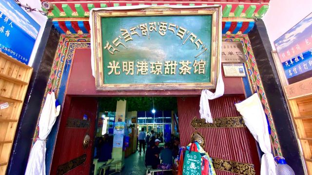 甜甜超可爱哦据说是拉萨最大,最有名的甜茶馆,抱着猎奇心理去尝试一下🥳🥳 营业🈺️:8:00-19:00 从外面看还以为是一个很小的店面,结果里面别有洞天~非常非常大,当然人也是真的很多很多👩🏻🦱👵👨🦳👱♀️👨🦱本地居民居多,也有不少的游客前来打卡 进门之后去里面拿个杯子,找个位置坐下就可以了,会有人来倒甜茶🥤,一元一杯💰,自备零钱哦~甜茶的味道就和奶茶味道一样,很好喝 除了甜茶,其他的食物都要去柜台点,且是不同的柜台,零钱支付,炸土豆🥔是必点的😋,蘸点辣椒面很好吃,五元💰一份,在里面的窗口购买!面条类是在最外面的柜台购买,然后去最里面取餐,点了牦牛肉面,炒面条🍝牦牛肉面很油,吃不怎么惯,炒面条还可以👌