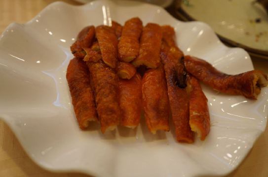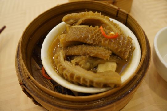 新强记烧鹅乳鸽海鲜酒家,在去车公庙的途中见到的,地铁到大围站下就会见到这间餐厅,这里的沙田三宝还挺出名的,沙田三宝包括:乳鸽、烧鹅、鸡粥。 中午的时候有很多的街坊来吃饭,需要等一下才有位置。 牛肚,焖的很软很入味,味道不错 虾饺,薄薄的外皮包裹着新鲜大大虾,我的最爱。 三宝之一, 招牌鸡粥,香、绵、滑,足料,鸡味很浓。 金牌烧乳鸽,皮脆肉嫩,不愧是三宝之一。 酥炸大肠,感觉炸过火了,比较干和韧。