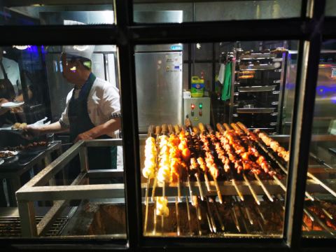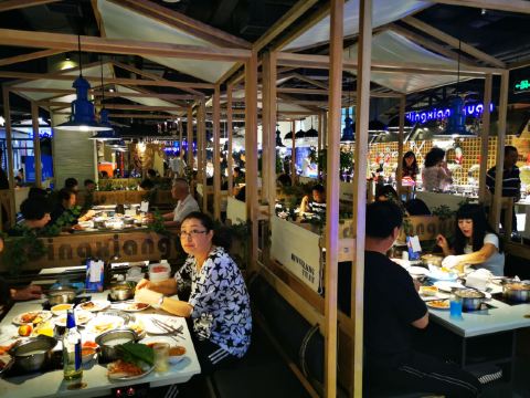 环境挺好,各项设施齐全。还有可以自助蒸海鲜的电锅。味道感觉一般,涮品品种挺全,还有水果西点,还有烤大串,烤地瓜。但是海鲜不是很新鲜,主要冲着海鲜去的,有点小失望。