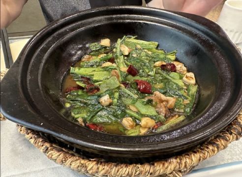 烤鸭味道一般,皮不脆 咬起来跟纸一样,45半分的切的带皮下脂肪的很多 以前吃的还可以 今天不知道是不是因为三四点去的,烤鸭不香,卷饼也没有提前问要不要直接上的,还有藤料菜单上有一份和小份,服务员直接上一份,半分的话卷饼肯定吃不完的,手珊老豆腐这个菜比较推荐 每次来都点,水煮肉片也还还可以