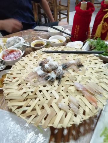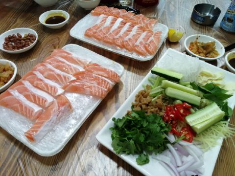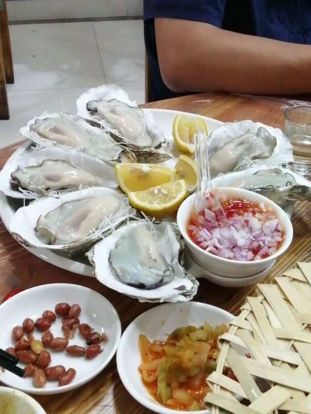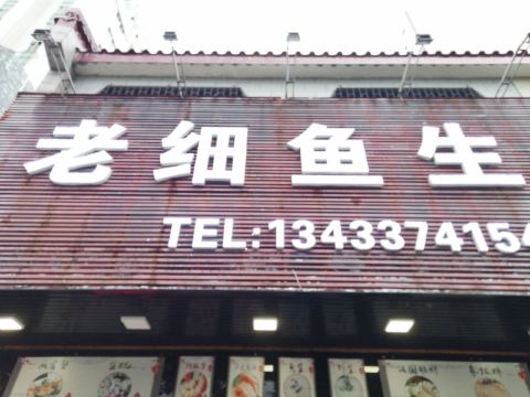 老细鱼生,门店不是很大,但里面环境很干净,主要是经营海产品,水产品,三文鱼腩,生蚝,淡水鱼生是特色,搭配各色小菜,调料非常好吃!