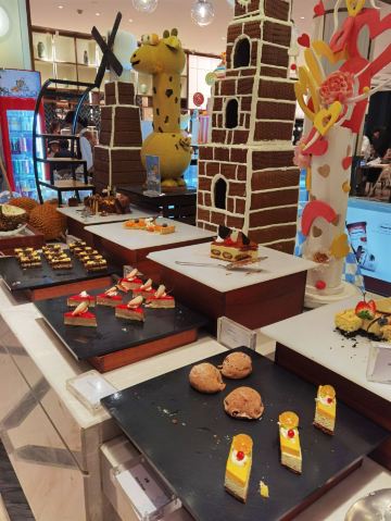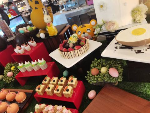 三文鱼刺身,香煎鹅肝,椒盐大虾,麻辣小龙虾,海参肉包子,慕斯蛋糕,小火锅,特色冰淇淋,三文鱼,刺身,烤榴莲,蛋挞,烤鱿鱼,提拉米苏,烤蛤蜊,烤五花肉,新鲜蔬菜沙拉配烟熏三文鱼,烤生蚝,芝士烤榴莲