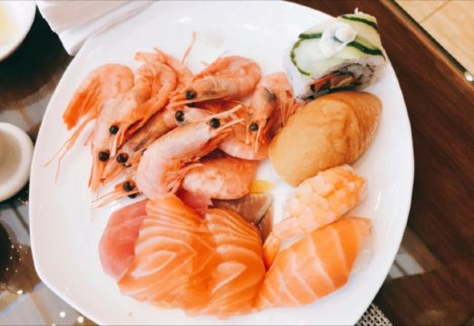 崂山区只有周四到周日才营业的自助餐厅,五点半开餐,提前电话预约了。餐厅位置不是很好找,导航过去差点儿就走错路了。不过门口停车还是很方便的。 这家餐厅其实蛮干净的,虽然地方不是很大,但装修比较上档次,种类的话算不上多,但该有的还是有。 海鲜类的最喜欢的就是三文鱼、金枪鱼跟北极虾,每次吃都是一大盘。特别是三文鱼,现切的,新鲜得很。他家的小龙虾也是狂推的,难怪每次一上桌大家都哄抢。,小龙虾有蒜香跟麻辣的,但麻辣的最好吃了。感觉自己一次性都可以吃上两斤。 除此之外,他家的甜品是我最喜欢的。甜品种类很多,拿破仑最好吃,巧克力慕斯也是不错的,臻果冰淇淋完全不输哈根达斯。