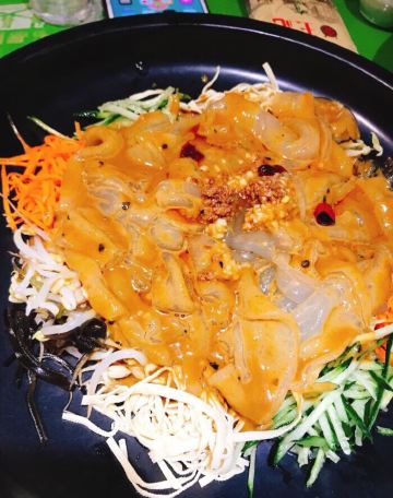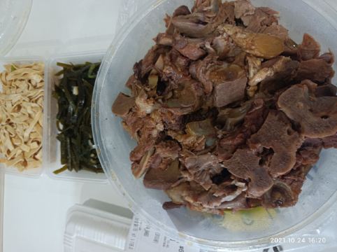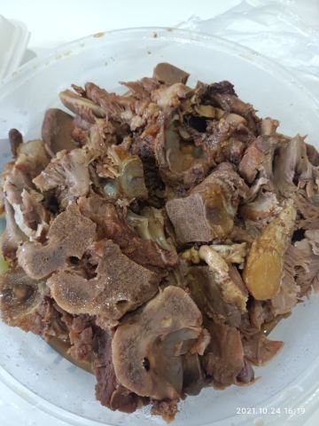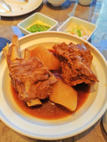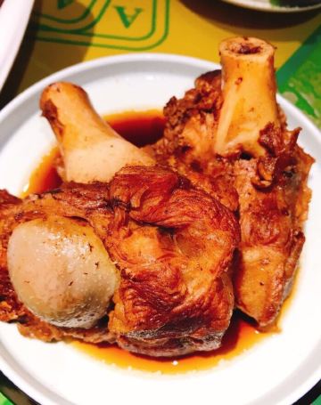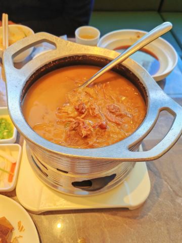 青青岛-王记酱骨头在青岛也算是老餐饮了,菜量大,酱的骨头味道够香,不但可以吃肉还可以吸骨髓。店在闽江路和云霄路交接口上,整条街上有年头了!店家新装修过,店铺整体明亮,中午饭点人不少。入座点餐,等餐期间店家给每桌上了点小食品磨牙,上餐速度还是很快的,酱脊骨肉还是不少的,配着肉汤炖入味的白萝卜,好吃又解腻。肉丝大拉皮也是他们家的特色,一如既往的口味稳定,调味也不错。最下饭的还是酸菜拆骨肉,连汤带水的一锅,很有仪式感的带着加热小锅,这时候米饭是绝配。环境不错,厨房部分是明档,卫生看得见,下次有机会再来尝尝他们家的招牌酱棒子骨,还可以吸骨髓。