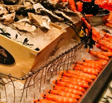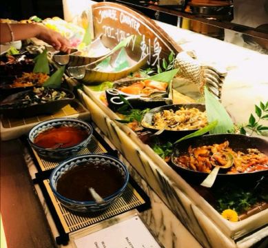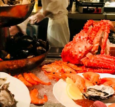 胡椒炒蟹,印度烤鸡肉,黑蒜烤生蚝,帝王蟹,羊排,三文鱼,现切烤牛肉,叻沙,辣椒螃蟹,冰镇海鲜拼盘