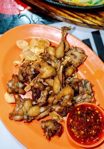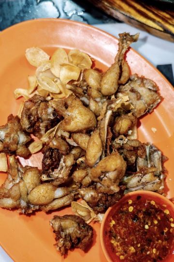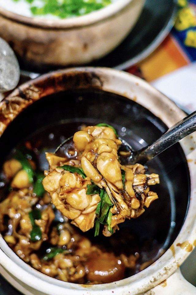 新加坡必打卡的芽笼九巷活田鸡,首店位于新加坡芽笼9巷,马来西亚,中国,柬埔寨和越南都有分店。还有一个是在这附近的明辉田鸡,这两家都很不错,都是20年老店区别在于明辉是米其林必比登美食。 主打砂锅宫保田鸡,狮城砂锅田鸡粥石胜煲仔粥,砂锅姜葱田鸡还有蒜片田鸡,田鸡都是新鲜现杀的,肉质比较鲜嫩,但是为什么看到蛙蛙萌萌的还有点可爱啊 我个人更喜欢宫保口味,浓稠的酱汁辣辣的偏重口味,配粥刚刚好。蒜片田鸡也很好吃特别是搭配的泰式蘸料,酸辣酸辣的特别开胃。