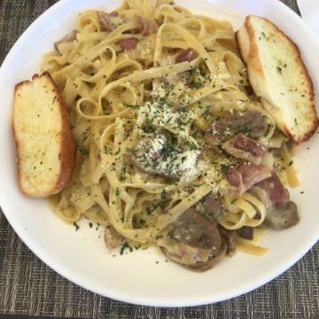 汉堡,龙虾尾,牛排,焗蜗牛,鱼肉奶油意面,培根蘑菇奶油意面,半熟吞拿鱼沙拉,法式洋葱汤,甜薯条