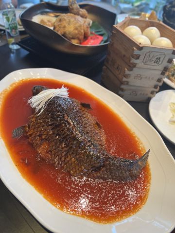YoYo_8W9X3T3W带外地朋友们逛完大雁塔来这吃饭, 回去后还一整个念念不忘😋 环境优雅,简直是陕菜环境天花板的存在 而且还📍距离大雁塔步行8-10分钟 ✔️秦椒柿醋油泼鸭嘴鱼 超大一条鱼 鱼肉鲜嫩紧实 刺很少 配着油泼辣子,香而不辣, 真的太有特色了! ✔️长安一品葫芦鸡 我敢说他们家葫芦鸡是我吃到好吃数一数二的 外皮酥脆,里面软嫩脱骨 鸡肉沾料和不沾料各有特色 ✔️油泼菠菜面片片 碳水永远的神,面片爽滑劲道,还带着菠菜的香味 炸酱臊子很入味 肉块煮的软烂 油泼辣子香而不辣 吃起来超过瘾 再来一瓣蒜,一碗面汤,人生不过如此 这家真的不光味道好,摆盘也好看, 大家都夸下次来西安还吃,太给我长面子啦💯!