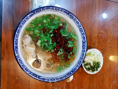 自己前几天蒸三屉馍,今早拿了二个馍,到五味十字喝小杨水盆羊肉。多年前喝过它家的水盆,现在一碗普通单走水盆23块,在西安目前价位是比较高的。小杨水盆羊肉口味变化不大,羊肉软烂,汤清飘绿。今天的粉丝不利索,添要小菜需另加一元,小气。