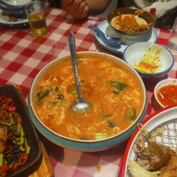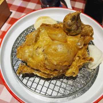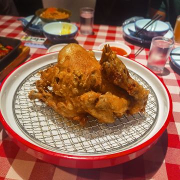 san gen dian gan口味:古城葫芦鸡尤为推荐,外酥里嫩,盘中一个漏网,可以漏掉多余的油,口感不会特别腻,值得体验! 环境:装修以复古风为主,主要以上世纪店铺为装修元素,以红色为主色调,视觉感受非常惊艳! 服务:客流量很大,排队的人很多!