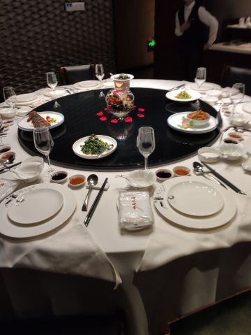 Mingzhou Fu Restaurant (Wenhua plazadian)最早接触海味世家是其位于长丰桥南的门店,至今一直对于其上汤螺蛳念念难忘,这次,商务宴请,机缘巧合安排在了这里,预定了包厢,底消4000元起。 门店位于文化广场东南端,地理位置独栋小楼,容易找寻,到店,入内,左侧一楼是点菜区,熟悉的阿拉宁波人喜欢的开放式明档点菜模式。 冷菜中58元的海味熏鱼,酸甜酥口,一致好评,相比而言298元的刺身拼盘,从食材的色泽度到口味都差强人意。 海鲜方面,我们选了时下流行的沸腾东星斑,选了699元一斤的活鱼,琥珀锅装盛,鱼内脏、鱼骨处理干净,漏勺捞鱼肉食之,油嫩无比,很棒。 特色菜方面林蛙,接触不多,肉质紧实入味,喜欢;98元的小青菜除了价格略高外,品质真心不错。 电梯上楼,包厢不大,内设卫生间,整体私密性不错,装修花了些心思,从电梯到包厢内,处处可见“茅台”的踪迹。
