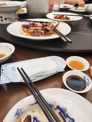 涌觅名灶.宁波家常小馆位于宁波市鄞州区的,东部新城国际会展中心,江澄北路国际航运中心对面的财富广场。这是一家性价比非常高的中餐馆。店铺干净整洁,有既有朩质皮椅的卡座,也有舒适的包箱。周边高楼林立,有市政府的办公大楼,但有安静得很。主要菜肴既有海鲜类:红烧杂鱼,青鱼甩水, 杂菌手工豆腐,红烧头,葱油梭子蟹和宁式鳝丝等。又有家常菜:泡椒牛娃,梅子肉,梅干菜仔排,咸蛋黄南瓜等。另外还有特好吃的酒酿核桃圆子羹和茄子年糕,酒酿圆子等。