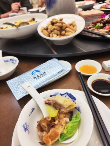 宁波几时休感觉最近宁波美食圈主打阿拉宁波本土菜品的餐厅喜欢上了“名灶”这个后缀,跟某一段时期的楼市一样,“XX府”、“XX道”遍地开花,这家位于宁东路与江澄北路交汇处财富广场东侧沿街底商的“涌觅名灶”,就是其中之一。 “观其名,知其味”,这天跟同事来国航中心办事,事了,时近中午,就来此就餐。 门面略隐藏了些,被人行道树和台阶所掩盖,外观也受广场整体建筑要求限制,除了门头略带古朴味道,其他无啥特征了。 推门入内,右手边就是收银台和阿拉宁波人熟悉的开放式点菜区,营业面积就一层,有二个包厢,其余散席,上座率不错,装修风格不夸张,新旧特色皆有。 做为宁波菜餐厅,我对于烤麸和青鱼划水这两道一冷一热菜品接受度较高,前者黑木耳、花生米、黄花菜都是阿拉宁波传统的做法搭配,油么么的口感,烤麸松软有弹性,整体滋味悠长鲜口,妥妥压饭榔头;后者鱼尾虽不是很大,但鱼肉厚实,方便入味,酱汁调和适口,名不虚传的“钱湖四宝”。