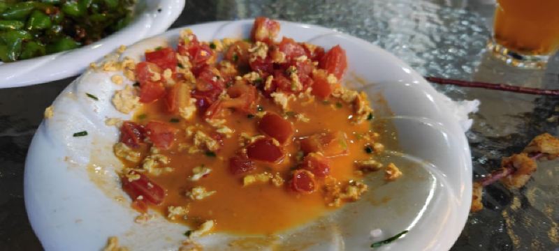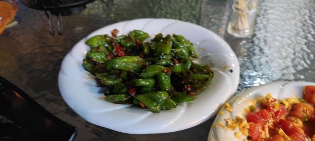 因为随家里亲戚去景区拍照,回来的时候已经是快晚上八点钟了,肚子已经饿得咕咕叫,想着快一点随便找个地方吃饭,手机搜了下附近的店就转进去路口。 沿街不少餐厅,可惜有一些已经不营业了,倒是这家店靠近路口,又有炒菜,又有烧烤,可以大快朵颐的啦!家常菜吃起来也很美味,很长时间没有感受这种街边吃饭的放肆爽快了。