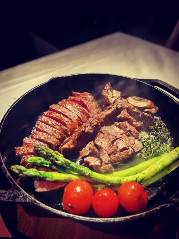 【位置】 百家湖1912街区,景枫对面肯德基往里走,车可以停街区里,也可以停金鹰、景枫,最近的地铁站是金鹰负一楼的百家湖站。 【环境】 优雅浪漫,非常适合约会。 【服务】 预定了位子,店家贴心布置了下,小惊喜。 店员小姐姐颜值高身材好,服务一流。 【食物】 推荐的女士饮品,也太美太好喝了。 餐前面包,三种口味,甜咸搭配很美味,还配了青酱,认真不敷衍。 重头戏,澳洲谷饲100天安格斯T骨牛排,铸铁锅上桌,又好看又保温,要了七分熟,火侯把握得极好,口感完美。 所有菜式都颜值、口味双在线,这个周末的夜晚约会非常愉悦。