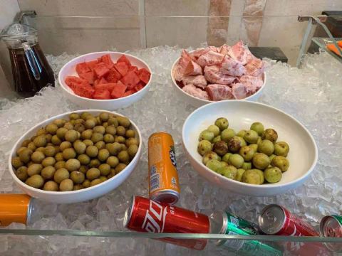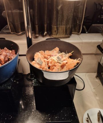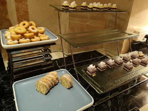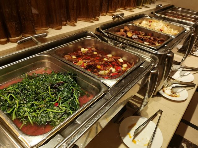 鸭血粉丝汤,扇贝,晶丽糖排,鸡汤馄饨,糖醋排骨太甜,鸡汁小馄饨,基围虾,盐水鸭,酒酿元宵,松茸汤,三文鱼,点心,蜜汁藕,橙汁