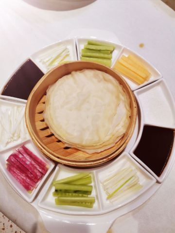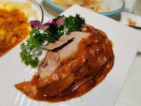 在下关开了很多年的饭店,在汉中门这片重开了。 【环境】 一样明档点菜,二楼有散座,有包间,包间用南京的小巷子命名,挺有趣。 【食物】 烤鸭半只,烤鸭皮又脆又香,肉嫩多汁,配套的饼菜酱圆盘也太美貌了,爱了爱了。 其它菜也水准在线,没有雷。