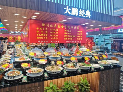 北京果子烤鸭,银丝虾,野菜干烧狮子头,坛香狮子头,美蛙鱼片,盐水卤鸽,鱼丸汤,大鹏招牌炒鸡,凤爪三拼,湘味脆乳瓜