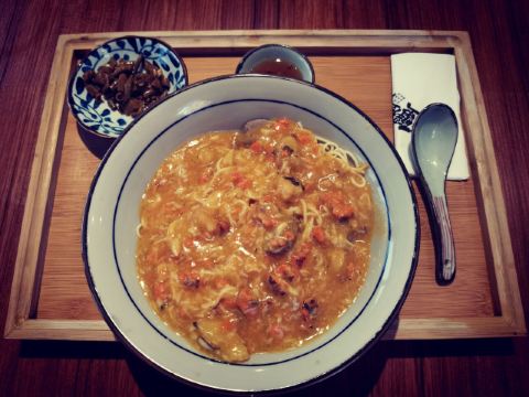 “假”美丽南京这家蟹粉面真的馋了很久,终于来打卡了,他家好火爆,来得晚都没号了,进店以后,满满的蟹香,两个人点了蟹粉面,蟹粉馄饨,还有蟹黄金鸡。