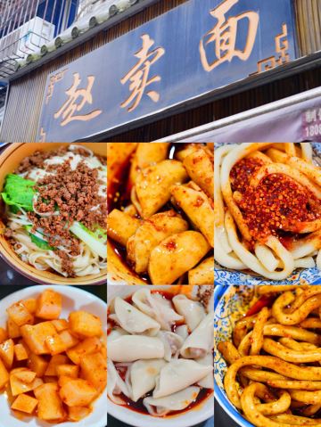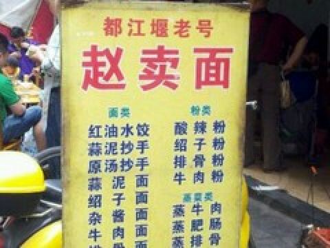 Zhaomai Noodles#2+1Bare Bears都江堰游#No.7——赵卖面 在小街上,有一面黄色的店招,只是已经褪色,变得比较不太显眼了。 店面比较大,座位很多。店里售卖各种面食、快餐。我们按照推荐选了甜水面、饺子,因为店面是赵卖面,我们还是坚持要了一份面条。 🥢甜水面🥢 佐料丰富,红油也比较香,甜辣味和蒜味融合得比较好,很合我的口味。就是甜水面面条太软,而少了韧劲,吃着差了很多意思。 🥟饺子🥟 第一次吃到这样的开口饺子,饺子肉馅完全没有煮散,口感很泡。佐料中的甜辣味如果更明显,我会更喜欢。😋 🍜素椒杂酱面🍜 都江堰的面馆几乎都是这种扁平的韭菜叶子面,嚼劲差了不是一点半点,可能做汤面还好,做干拌面的话 就没法胜任了。 我的吃后感,饺子排第一,甜水面第二,面条第三。