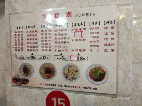 甜水面,红油水饺,小饺子,素椒面,牛肉面,粉蒸排骨,粉蒸牛肉,杂酱面,牛肉,粉蒸肉,蒜泥抄手,杂酱,红油抄手,银耳汤,鸡杂粉,碎绍面,肥肠粉,䒱排骨,排骨米线,脆绍面,牛肉米线,肥肠面,抄手