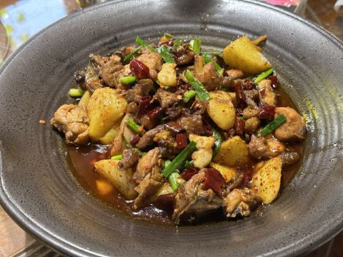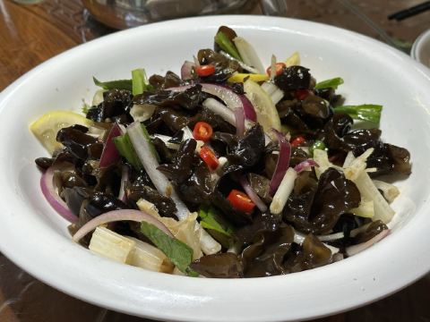 陌染MM去云南旅游,来到了大理,在大理古城游玩后,导游带我们过来的,这里也是一座园林式的餐厅,用餐环境特别好,而且一桌客人就是一个大包厢,不用和别人挤,也不用怕被吵到了。这里的出品非常不错,很有特色,重点之一还是现做的,是不是预制,一吃就知道。 好几道菜品都不错,例如:{凉拌面},有很多配料,五颜六色的配料充分与面条搅拌在一起,浇上一勺酸甜酱料,太好吃了,特别是炎炎夏日,凉面可以解暑是吗?哈!{凉拌木耳}、{洋葱炒肉丝}、{土豆炆鸡},都好吃,而且还是不怎么辣的味道,适合广东人的胃。{酥炸小酥肉},更是绝了,没有一点油溢味,只有香喷喷的香气,外酥内嫩多汁,就是它了,连平时不太喜欢吃上火食物的团员也赞不绝口。