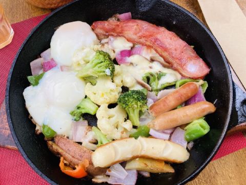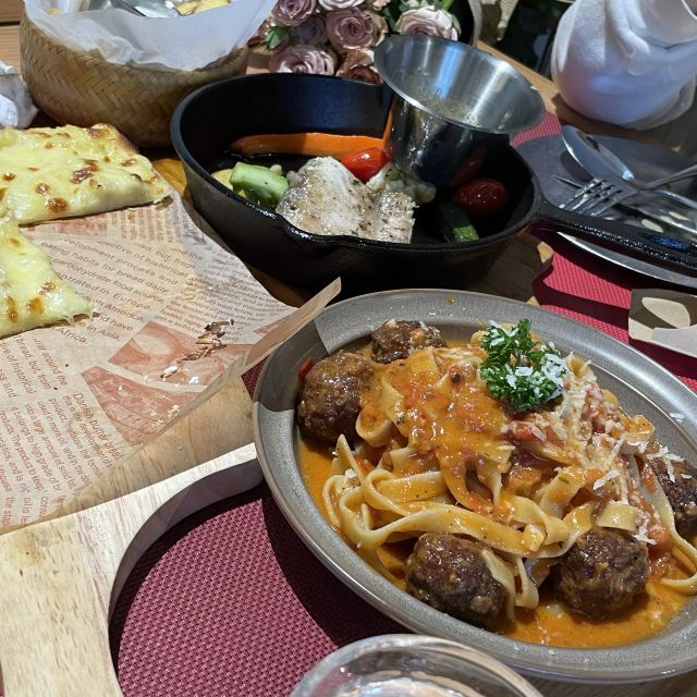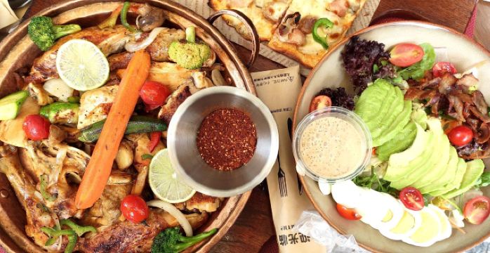 薯角,法式焖蛋,榴莲薄饼,牛肉汉堡,黑椒牛肉薄饼,纸牌屋烤肋排,各类薄饼,奶油蘑菇培根意面,尼泊尔奶茶 ,双拼薄饼,时蔬炒饭,气泡水,田园色拉,金枪鱼薄饼,美式早午餐