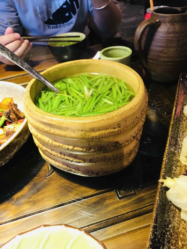 餐厅位置隐藏在一个小弄堂里,是一座历史比较悠久的白族院子,木屋,环境比较有居家温馨感,也不乏文艺气息。菜品口味地道,而且做得很有特色。