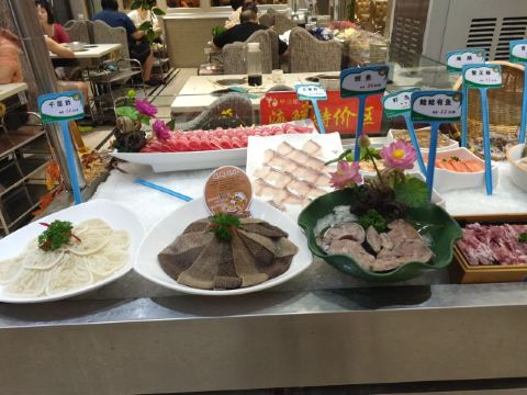 老毕特选肥牛,手打鲜虾滑,手切羊眼肉,鸡蛋面,手切牛肉,冰镇酸梅汤,鲍鱼,炸豆皮,赤贝,阿根廷虾,布朗尼,阿根廷红虾,三色豆腐,鸡蛋手幹面