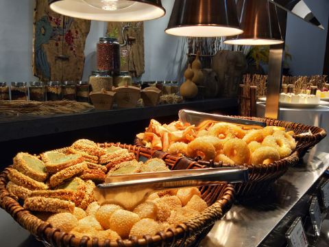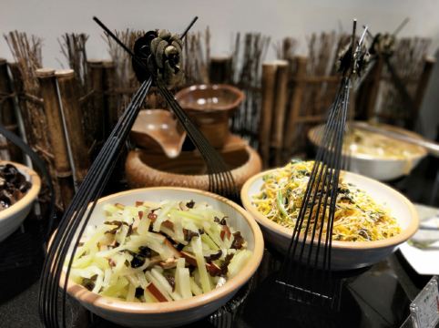 烧汁杏鲍菇,锅贴,蛋挞,酸奶慕斯,苏子饼,油炸白玉菇,蒜子烧雷笋,焖子,炖豆腐,横山米线,酥饼,炒碴子,五谷粥,凉拌米线,香菇白菜素饺,豆腐,横山小面筋,炸酱面,凉拌蕨根粉,海菜包子,炒米线,秋葵干,豆沙包