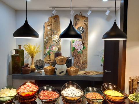 79元一位的素食自助,收获到满满的惊喜。面点制作很不错(各类的现包素馅包子),经典的素食种类都有呈现(特别是蘑菇类的以素托荤),水果种类挺丰富(西瓜、哈密瓜、菠萝、火龙果等等),饮料用的都是盒装的,喝起比同价位的自助好挺多。周末来人特别多,但即使人多,上菜速度还是可以的。现磨豆浆挺好喝,很绵密。大赞!!!