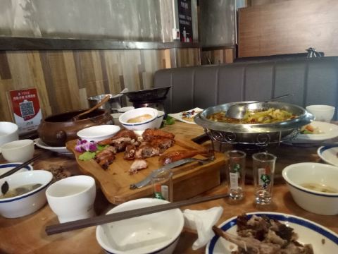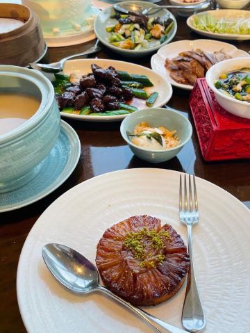 老北京果木烤鸭,桂花糖醋小排,宫保虾球,丁香熏鱼柳,大连海鲜焖子,秘制虾球白菜,锅贴三鲜,壹品锅包肉,麻酱牛肉,海胆,澳洲龙虾,糖醋黄鱼,锅包肉