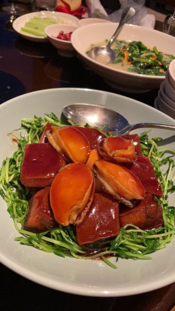 Dalian·Dalian采薇采薇,薇亦柔止。 ——《小雅·采薇》 采薇的“薇”指的就是野豌豆苗。 沈从文以“格”评菜肴。 或许,只有这博得梅兰芳、鲁迅、周瘦鹃、严独鹤等雅士青睐的微苦茎叶,才可属隽品之“格”。 在君悦星海湾一号的新菜单中,最得我心的便是一道鱼汤豆苗。 曾在一美食佳篇中获知,香江称豆苗最尖端的三瓣嫩叶为“豆杯”。 通过经理与厨师长确认,鱼汤豆苗的选料确为豆杯,惊喜不已。 北方罕有了解豆杯的,更鲜有烹制的。 第一次去点的时候,对摆盘盛器是满意的。 豆苗被牙白浓汤沁出釉样的翠意,与蟹壳青色的磁盘浓淡相宜。 可惜鱼汤口重,奶香厚味,遮了豆苗的清新。 数日后忍不住又去了一次,特意和经理交待,汤汁一定要清爽薄盐。 这次体验不错,没有一丁点味精的味道,鱼汤清鲜,衬托出豆苗的本味。 入口脆生细滑,舌苔分明感受到微涩汁液的绽放,让人凭生愉悦。 这是本市不多见的菜,值得为之单独跑一趟。 另有一道黄油老虎斑印象深刻。 这是第一次尝试清蒸以外的做法。抱着吃蜘蛛的心态,居然吃到了螃蟹。 整鱼外皮以黄油煎好,外脆里嫩,鱼肉自有的鲜美流失较少。 酱汁比蒸鱼的豉油略重,但鲜甜不腻,较好地平衡了黄油的浓郁。 比之前在此吃过的啤酒多宝鱼、糖醋黄花和炖黄鱼都特别一些。 冷盘一直是餐厅所长。 新推的小赤贝处理的极干净,只留了最韧脆的贝肉,淡淡的醋香和着椒丁的辛甜,激起舌两侧味蕾的一阵酥麻。 酒香鲍鱼不知是否是用了低温慢煮,一缕酒香萦绕,对鲍鱼这么不易入味的食材而言实数难得。 醉蟹也不错,酒浸过的蟹膏香而不腻,咸甜两宜。虽是冷菜,那丝丝酒香却可撩起两颊的微热。 经典菜肴如龙虾、牛肉、烤鸭、焖子等,水准一直在线。 然而,就餐多次,有两点始终不尽如人意。 一是服务员的专业程度需要提升。 二是饮品质量一般。