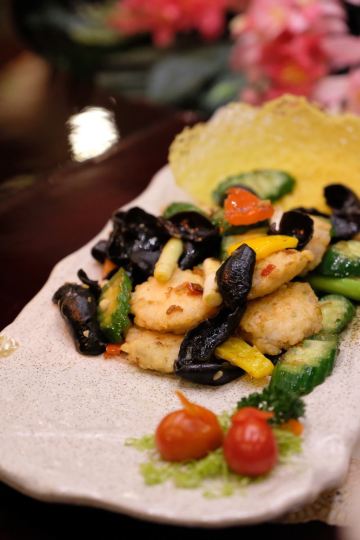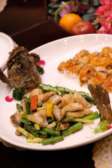 家芹戏海胆,松茸炒土豆丝,金汤佛跳墙,避风塘波士顿龙虾,金蒜爆小牛排,海参捞饭,海胆,佛跳墙,养生烤馒头,大虾,杏鲍菇仔排,养生馒头片,海胆豆腐,大海虾,松松老鸡汤