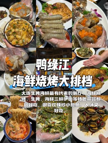颢文007大连旅游吃什么?这一篇就够了! 📍海味当家:来大连怎么能不吃本地的海鲜!坐拥星海广场便利位置的这家海鲜蒸锅店是本地老牌子了,海鲜品质在大连算得上是top级,本地人有朋友来大连旅游都来这里宴请,因为这里的海鲜比市场上见到的还要肥,而且个顶个的新鲜,用蒸的方式保留了海鲜原始的鲜美,不加一滴调味料才能吃出海鲜本身的味道! 虾蟹海鲜粥是他家的招牌特色。原理是把蒸完的各种海鲜精华汤汁全都流到下面的粥米里形成的一锅粥,再配点店家给准备的爽脆小咸菜,味道别提有多好了,想吃大连特色来这就对了! 📍南浦洞肉铺:大连的烤肉店,属这家正宗,老板娘韩国留学回来,把韩国的美味原封不动带来大连。这家的五花肉配菠萝或者竹笋,吃起来不油腻又很香。芝士玉米、紫菜拌饭、海鲜饼、各种烤肉都很好吃,主要店里装修很有韩国市井的味道,很适合拍照打卡。 📍鸭绿江海鲜烧烤大排档:大连本地人没有不知道的,提到海鲜烧烤首先就想到这家店,店了除了海鲜烧烤还有各种生腌、海鲜三鲜伊面等特色菜品,很喜欢辣炒小鲍鱼,入味又好吃。 生腌母飞蟹:入口一氓就化,保留了螃蟹原有的鲜味,没有腥味,真的是满口鲜甜,蟹黄又特别香。香辣鳌虾:会比小龙虾的壳厚一些,肉更大更紧实,吃起来更加过瘾! 主食来一份黄蚬子捞饭,每一粒米饭被海鲜汁包裹着,鲜甜鲜甜太满足了! 📍常鲜楼海胆馆:本地人吃海胆就来这里,生吃活海胆里面的海胆肉巨鲜甜啊,入口即化,回味中还有大海清新的味道在鼻腔里面。螺丝椒烧海参里面有海参、五花肉片、海南螺丝椒,拌着米饭吃太香了!海胆饭也很推荐。 📍仙生生寿司专门店:中国日料看大连,大连的日本企业多,在这座城市工作的日本人也很多,造就了一大批好吃地道的日料店。中山广场旁边小巷子里的这家专门店是每次款待重要朋友都会来的店。店里环境优雅,食材都是选用新鲜鱼生,鲜都拉满。而且大连木质有轨电车在这里有停靠站,拍照打卡也很出片! 鹅肝寿司:米饭手握还带着温度,鹅肝油脂丰富,入口即化,油脂的香味一直在嘴里回味 刺身五点:不同品类的鱼生都很新鲜,三文鱼厚切的油脂丰富,入口细腻又软嫩,鲜香四溢,幸福感直接拉满! 店里服务员很热情,有求必应,临走打包的袋子里面还配了小包的山葵、酱油,餐巾纸和筷子,是真的很贴心。