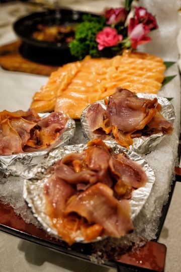 樱桃肉,河蟹豆腐,蛋黄焗飞蟹,三鲜焖子,蒜香小排骨,烤大虾,花卷,茼蒿海蛎小豆腐,蒜香小排,酸辣乌鱼蛋汤,大头菜烧海螺,飞蟹,炒螃蟹,海鲜全家福,海胆,海螺串,清蒸飞蟹,海螺,海味全家福,炸蛎黄,手抓饼,蚬子,拌蚬子和拌海参,鲍鱼捞饭,红烧蝶鱼头,海鲜,螃蟹,河蟹