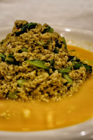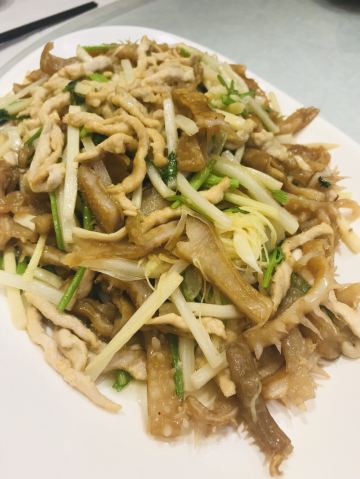 下班后没啥事,4个小伙伴一起约个饭。大白菜炒榛蘑放点五花肉,白菜脆甜,很香很下饭。龙虎斗这是典型的大连老菜,很少店能做出来,其实直白点说就是肉丝、笋丝炒蛰皮家店香菜,看起来简单确实一道工夫菜,很考验厨师的功底,同行的小伙伴都很喜欢。石锅长豆角是我自己非常喜欢的,有点干锅的感觉,能很好的突出豆角的味道,搭配五花肉相辅相成,放点辣椒更提味。养生烤山药这个也是我很喜欢的一道菜,就是比较费时间,烤好的山药一头包裹着锡纸方便拿取,配的桂花酱,很是香甜。煎鲅鱼配小饼子,很家常,鲅鱼正是季节,煎的表面金黄里面油脂还丰富,和小饼子一起吃,越吃越香。主食要的是芸豆包子。隆重推荐一下,这个棒鱼刺身,很考验鱼的新鲜度和师傅的刀工,一条棒鱼12元,三条鱼就能做出一大份来。棒鱼刺身肉质紧实,口感弹牙,喜欢的小伙伴一定要试试哦。