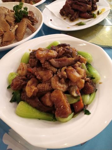 离开大连前又一顿海鲜大餐:海胆、生蠔、海虹、鱼生片和许多横菜,加上赖茅,真是丰盛,正宗本地菜推荐老菜馆,镇店之宝就是生吃海胆!新鲜肥美到不行!炒鸡新鲜!那个刺还会动,蘸芥末一起吃一流,冲击味蕾,大连人太幸福了!