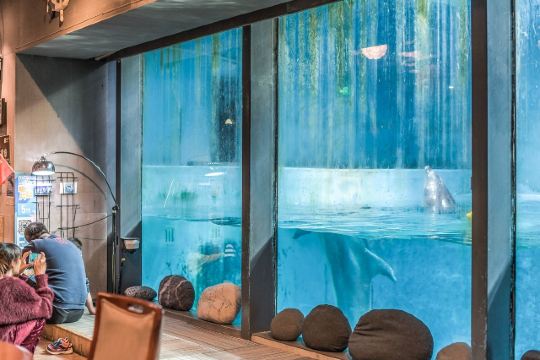 山野幽居大连唯一的海洋馆西餐厅:可在就餐时观看表演,还免去了门票 大连是我国海岛型城市,海洋馆处处可见,所以对于大连来说海洋馆已经不稀奇了。可是,在海洋馆开设独立的西餐厅,就显得非常罕见了。在大连就有这么一家海洋馆内的西餐厅,海洋馆的动物与餐厅仅隔着一层玻璃,坐在餐厅就餐可观看海洋动物们的表演,最值得一提的是还省去了高额的门票。如此看来,这家西餐厅算得上是大连市难得的宝藏级餐厅呀! 这座地处大连星海广场的海洋馆从外形上来看,与国内其他海洋馆并无两样。唯独不一样的是外面有更为醒目得美食广场招牌。说到这里,大家能够猜得出这就是山野君为大家分享的海洋馆西餐厅的位置了吧?不错,在这海洋馆里面就有个以观海洋馆景观为主题的西式餐厅,话不多说了,一起进去看看吧! 站在海洋馆的外面还以为是一个普通的海洋馆,进入之后才发现内部是别有洞天。进入室内的左手方向就是餐厅了,餐厅大门口有一个很醒目的“鲸”字。此时此刻不用山野君介绍,我相信大家都能够知道这是一观赏海洋馆动物鲸鱼为主题的西餐厅了。 内部装修是以典型的咖啡屋为主题,这种带有轻奢与小清新格调的西餐厅,让人耳目一新。更为重要的是里面的环境非常不错,并且拥有大连唯一的海洋馆内观景西餐厅,这个才是最大的亮点呢。 西餐厅的面积比较宽敞,有着比较舒服的空间感。虽然就餐的桌子不多,但是分布错落有致,给人非常不错的视觉体验感。很多人可能要问这种不通风且无窗户的餐厅,空气质量能够得以保证吗?可以肯定的回答完全可以。室内的换风机与空气净化器的功率相当大,为空气的流通与呼吸环境提供了非常可靠的保障。 这家西餐厅在硬件方面做得非常不错,最大的卖点就是海洋馆观景了。坐在餐厅的任何一个角落都能看到对面的海洋馆玻璃内的鲸鱼们。有遇到海洋馆表演的时候,这里人满为患,整个场景非常热闹。在大连看海洋馆已经不稀奇了, 在海洋馆内一边就餐一边观看海洋动物以及演出才是稀奇的事,你们觉得呢? 这座海洋馆规模不小,一个玻璃水池中拥有好几只蓝鲸,这些海洋世界里的巨型宠物们在水中游来游去的,时而安静时而吵闹,为餐厅的人们就餐提供了不少的乐趣。我很喜欢这种观景的餐厅,而且还是海洋馆内的这种西式餐厅,非常罕见。 大连鲸咖啡海洋馆西餐厅不仅是外地游客到此打卡的绝佳之选,还是本地人亲子游的不错选择。每逢周末时,爸爸妈妈们都带着孩子来这海洋馆餐厅一边玩耍拍照一边享受属于大连人口味的西餐厅。